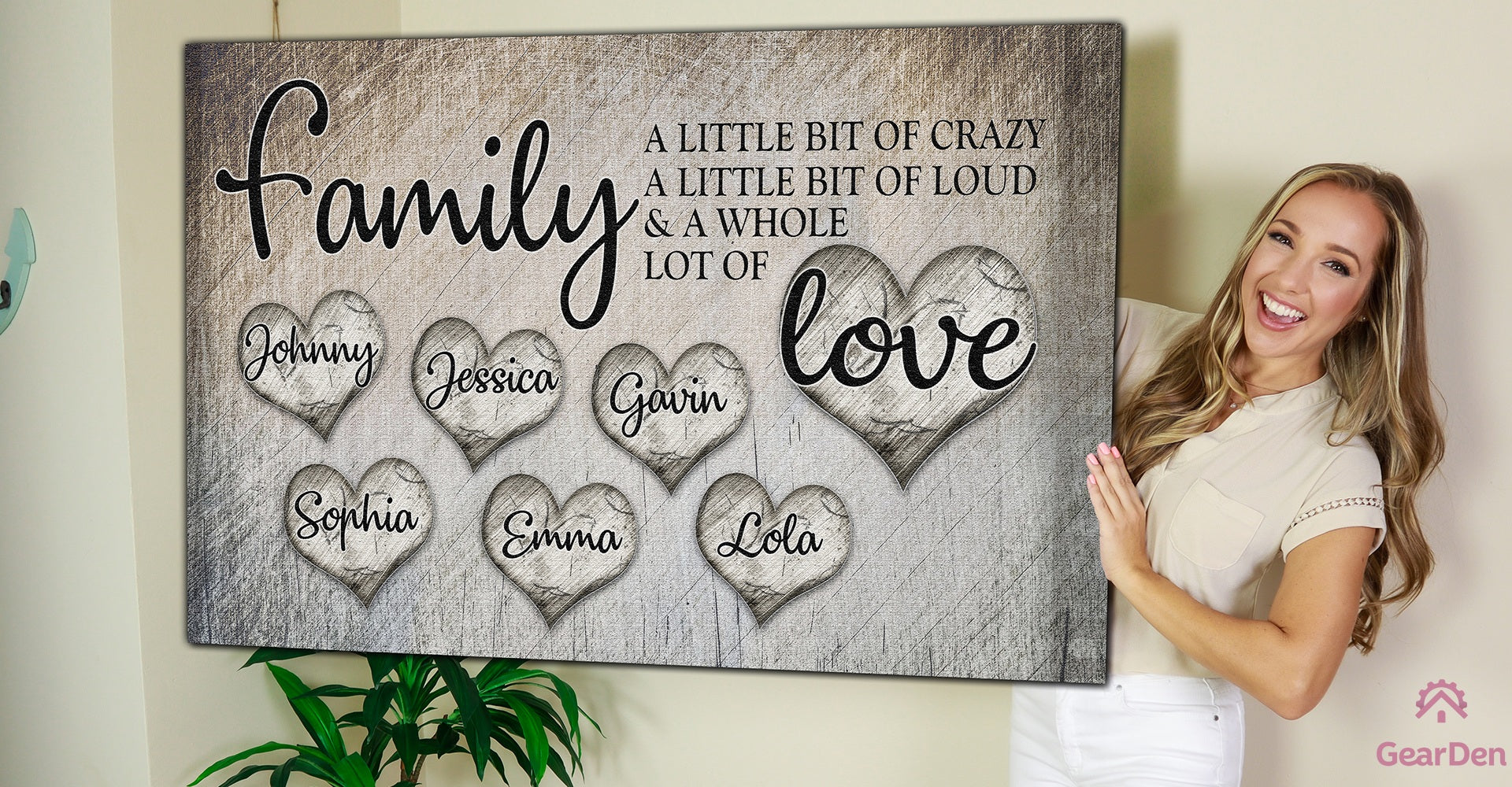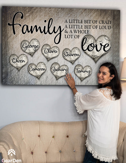 Personalized "Family...Crazy, Loud, Love" Heart Design Premium Canvas