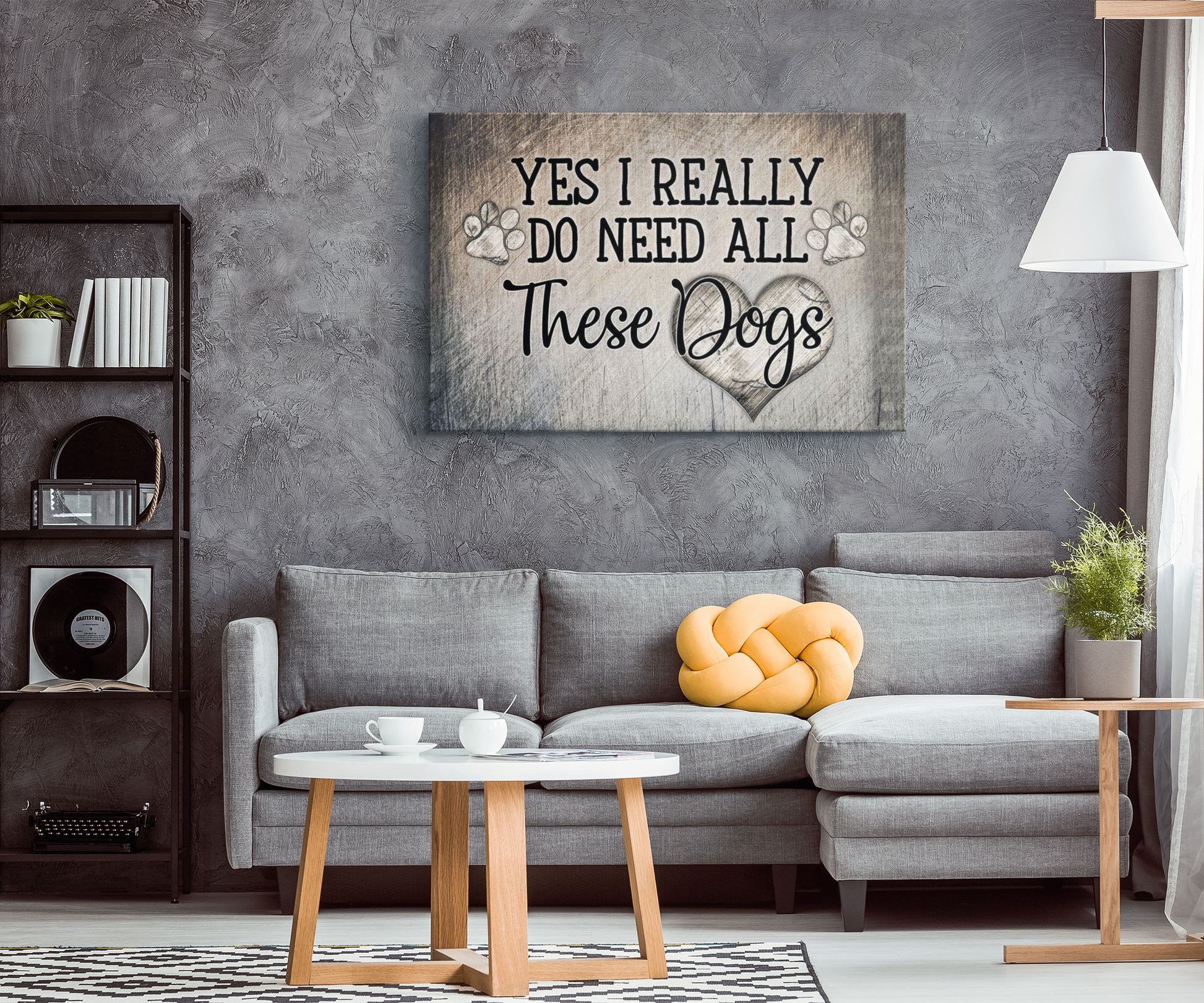 "Yes I Really Do Need All These Dogs" Quote on a beautiful wooden image backdrop canvas. What a fantastic gift for a family home this year!