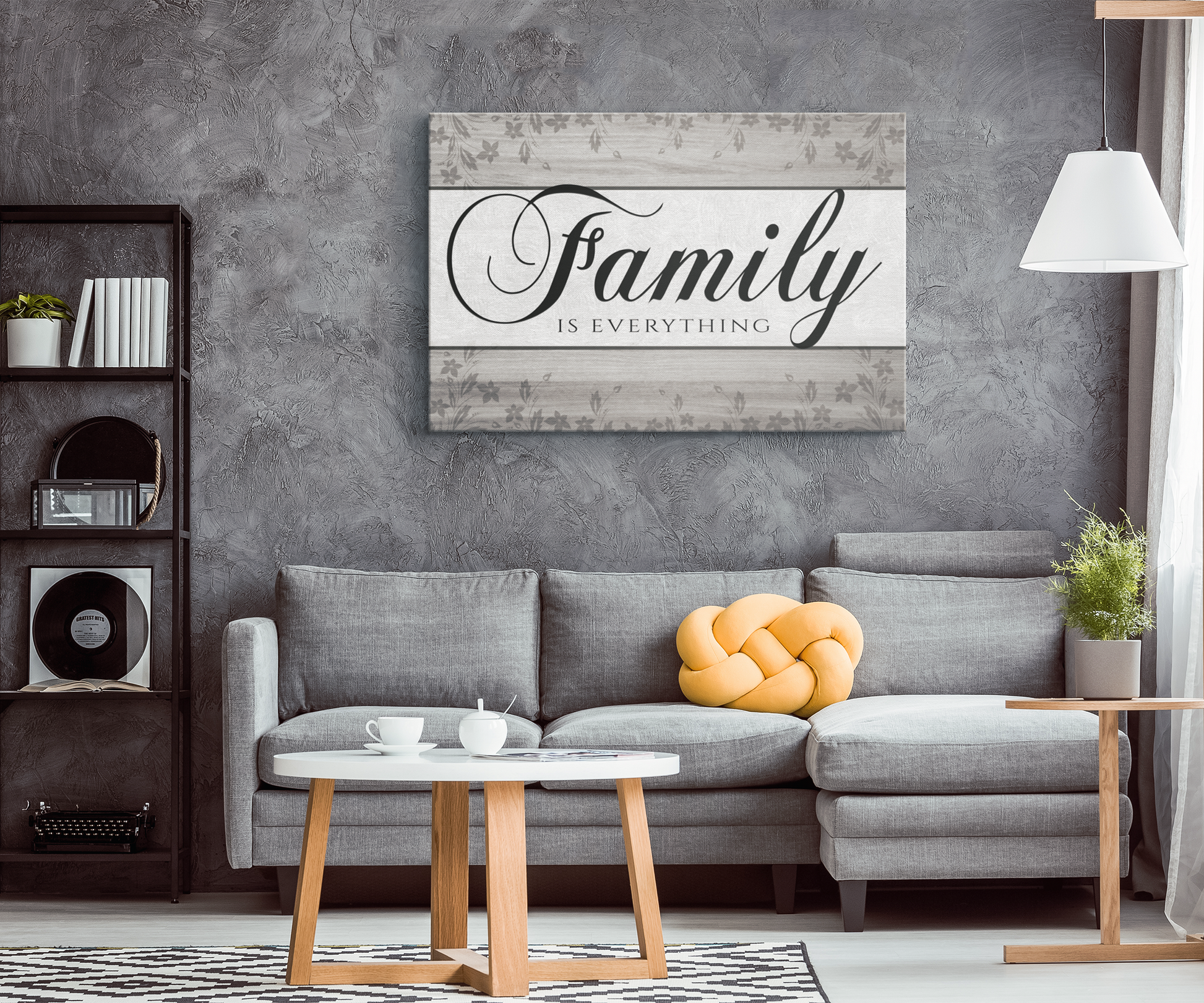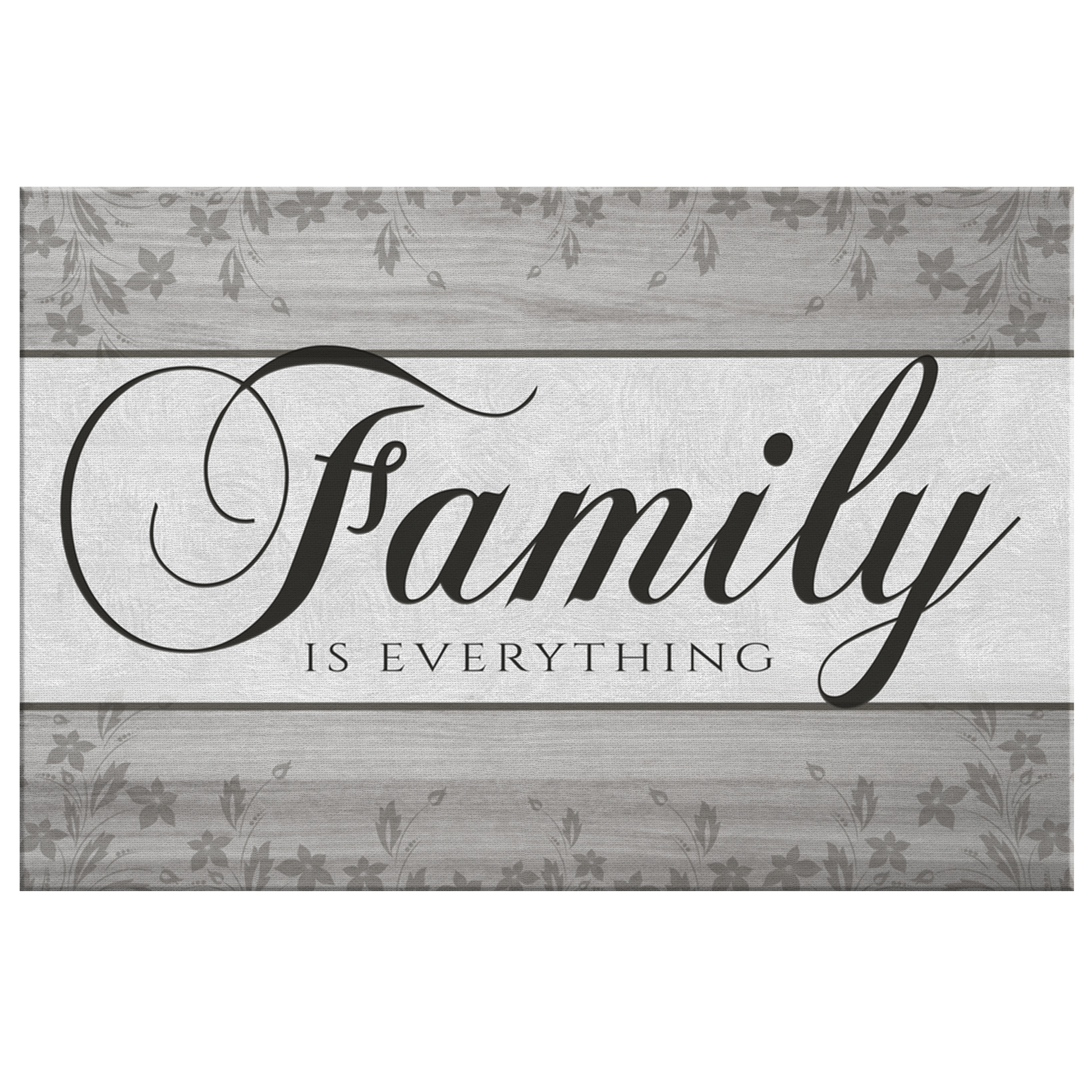 "Family is everything." Quote on a beautiful wooden image backdrop premium printed canvas. What a fantastic gift for a family home this year!