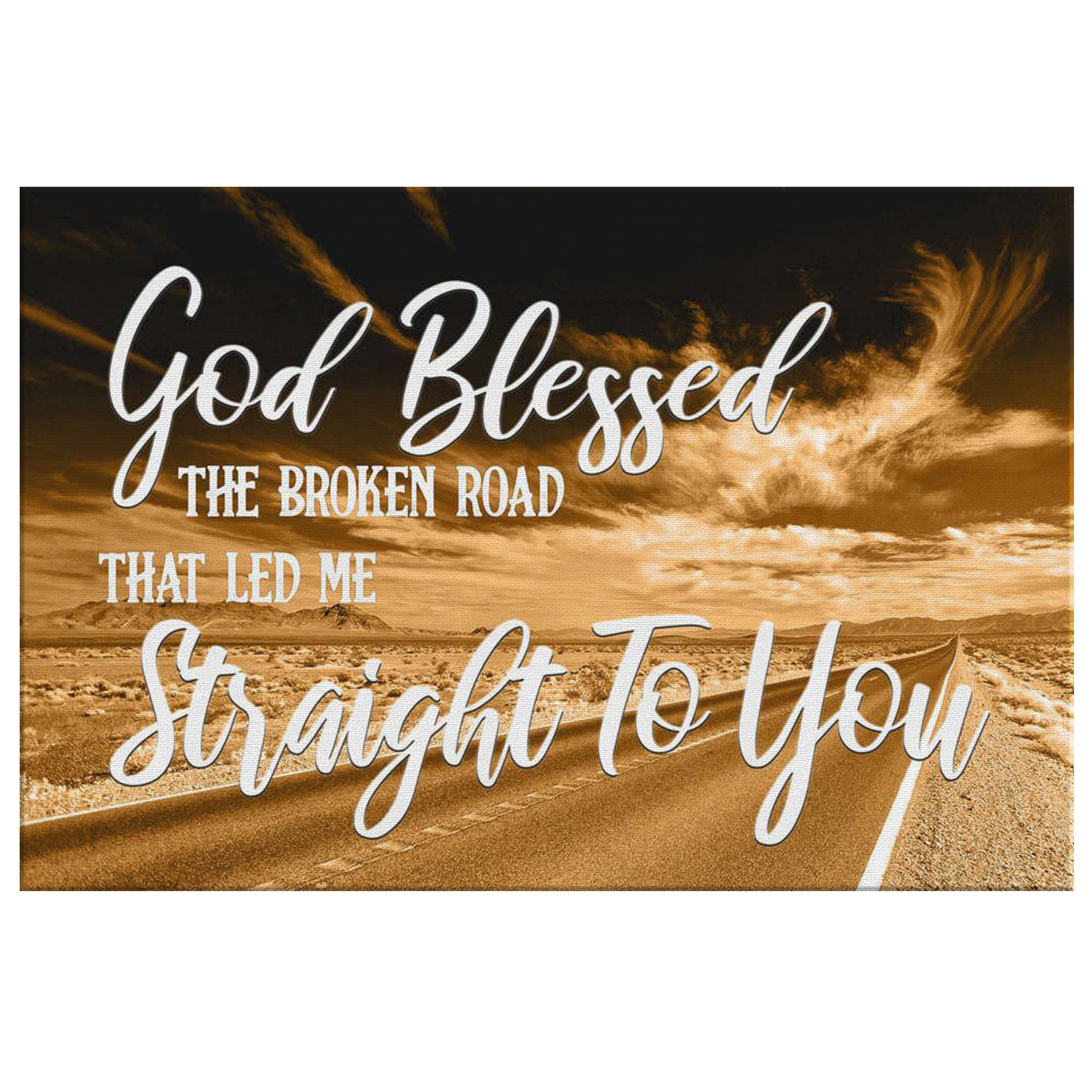 "God Blessed The Broken Road That Led Me Straight To You " Quote on a beautiful photographic backdrop canvas. What a fantastic gift to give a loved one this year!