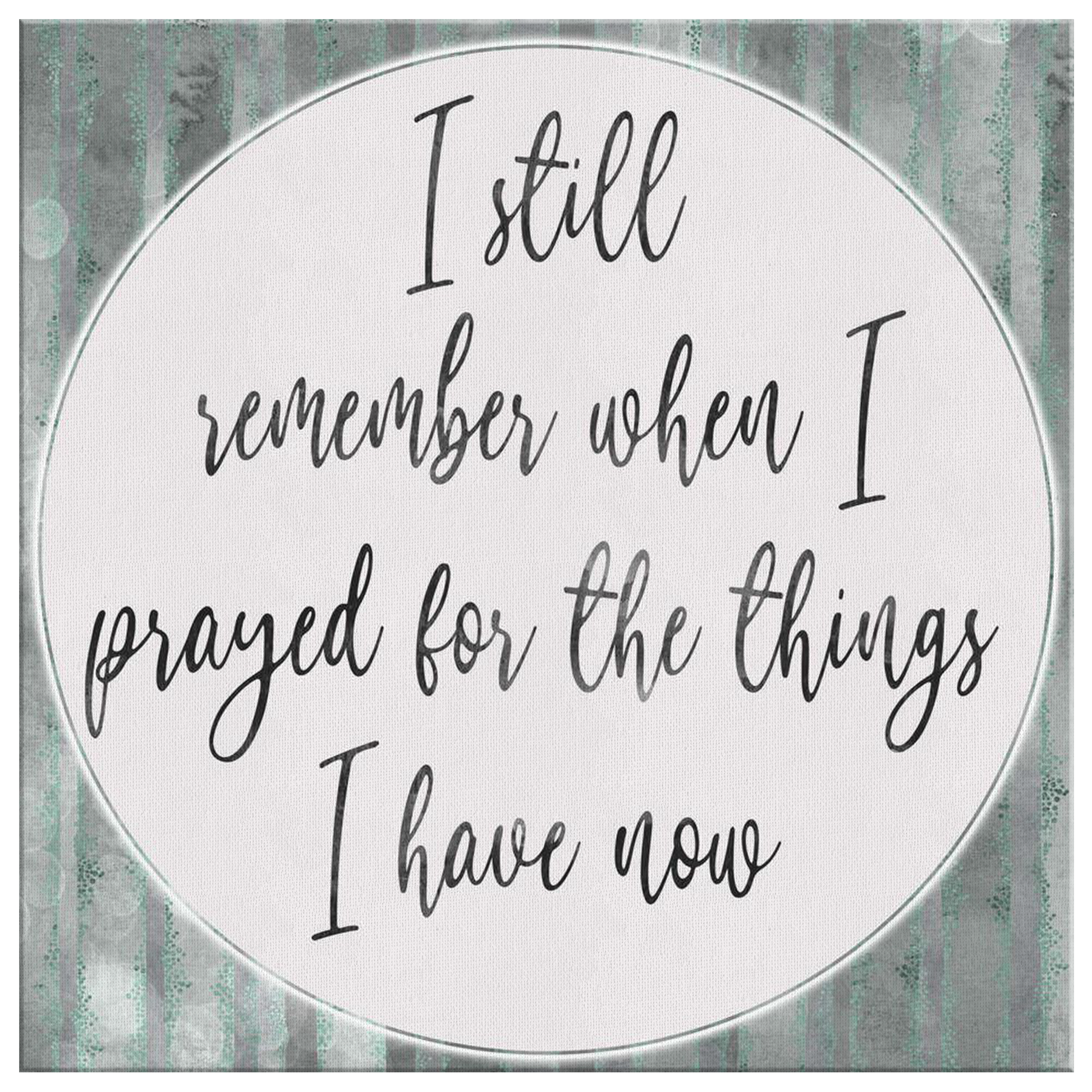 "I still remember when I prayed for the things I have now." Quote on a beautiful wooden image backdrop canvas. What a fantastic gift for a loved one this year!