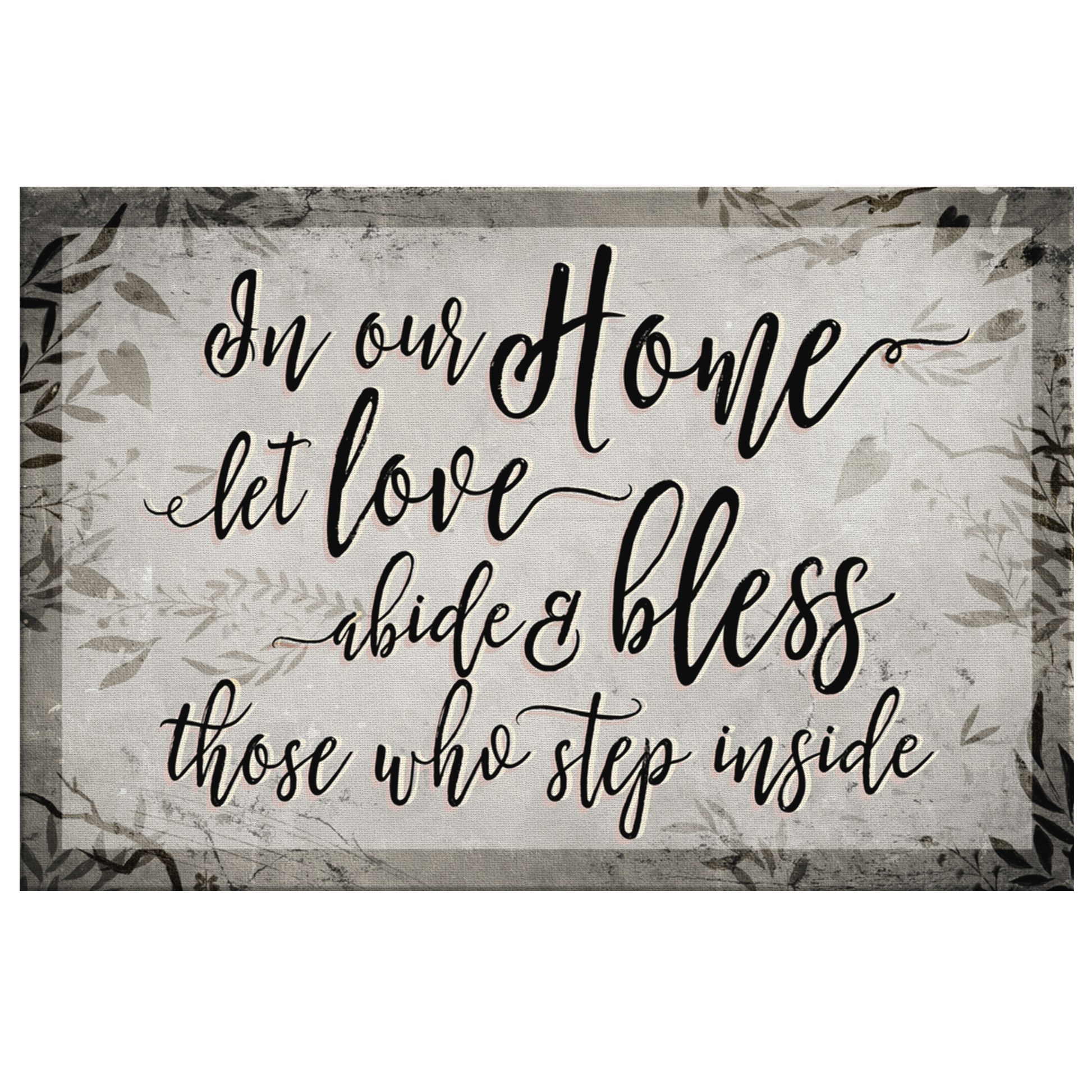"In our home, let love abide & bless those who step inside." Quote on a beautiful wooden image backdrop premium printed canvas. What a fantastic gift for a family home this year!