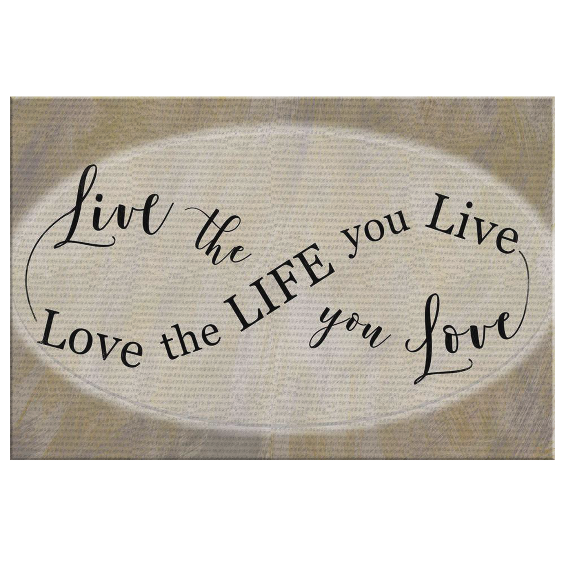 "Live The Life You Love, Love The Life You Live" infinity design on a beautiful wooden image backdrop premium printed canvas.
