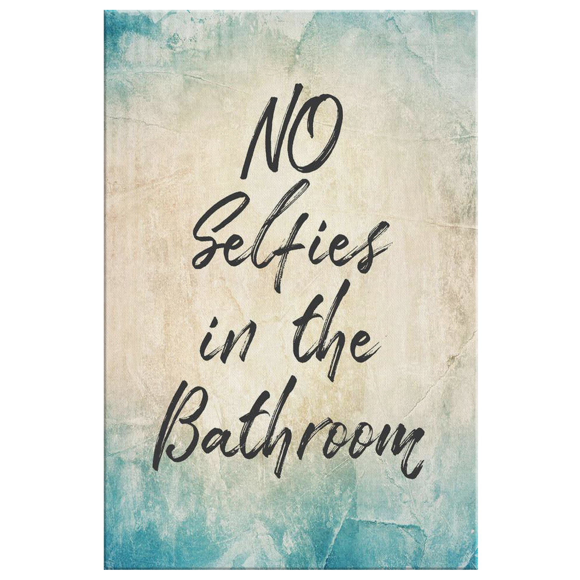 "No Selfies In The Bathroom" Quote on a beautiful retro image backdrop, premium printed canvas. Perfect fun wall art for a bathroom!