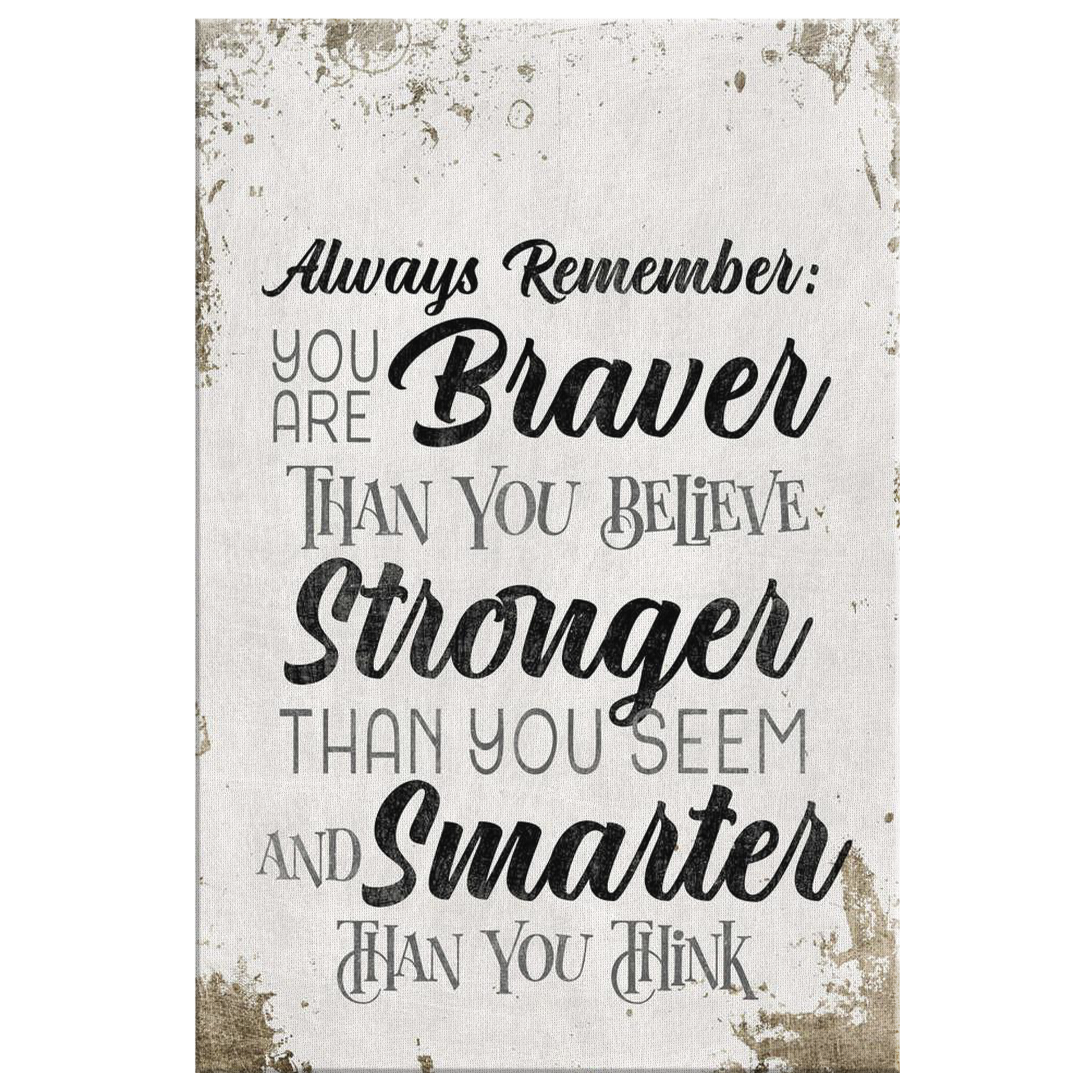 "Dear _____ Always Remember: You Are Braver Than You Believe, Stronger Than You Seem, And Smarter Than You Think" Quote on a beautiful wooden image backdrop premium printed canvas.