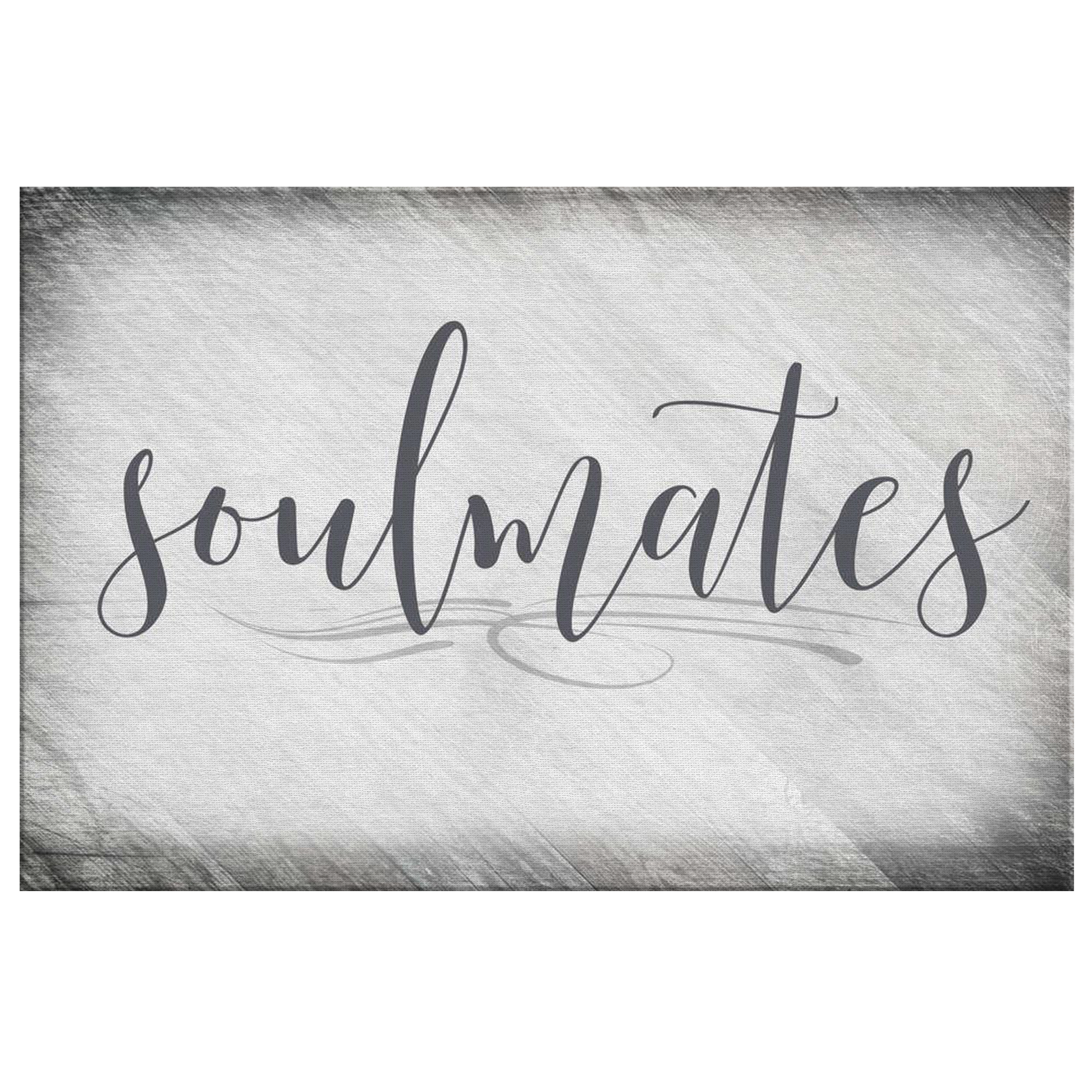 "Soulmates" Quote on a beautiful light gray rustic backdrop, premium printed canvas.