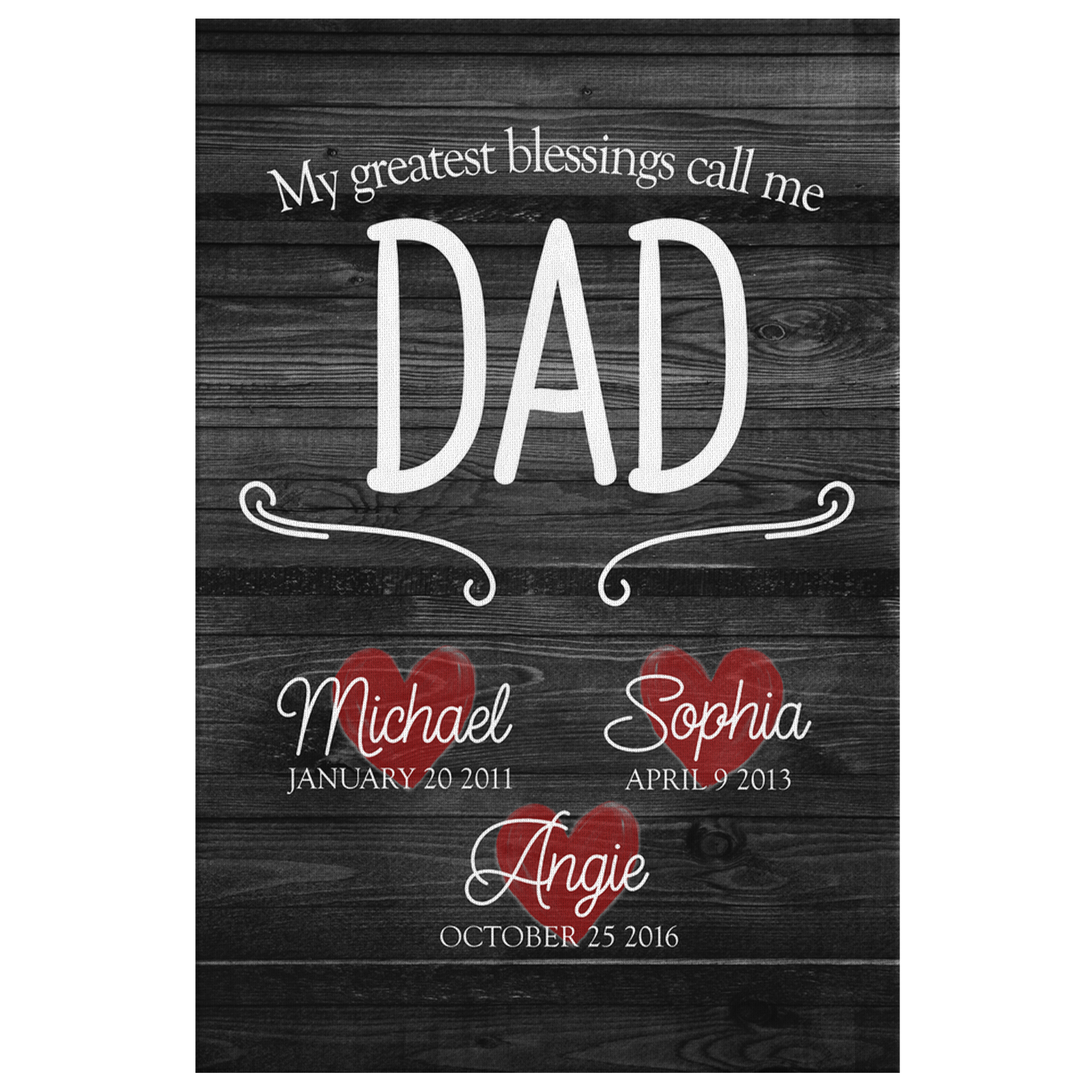 Personalized "My Greatest Blessings Call Me Dad" Premium Canvas