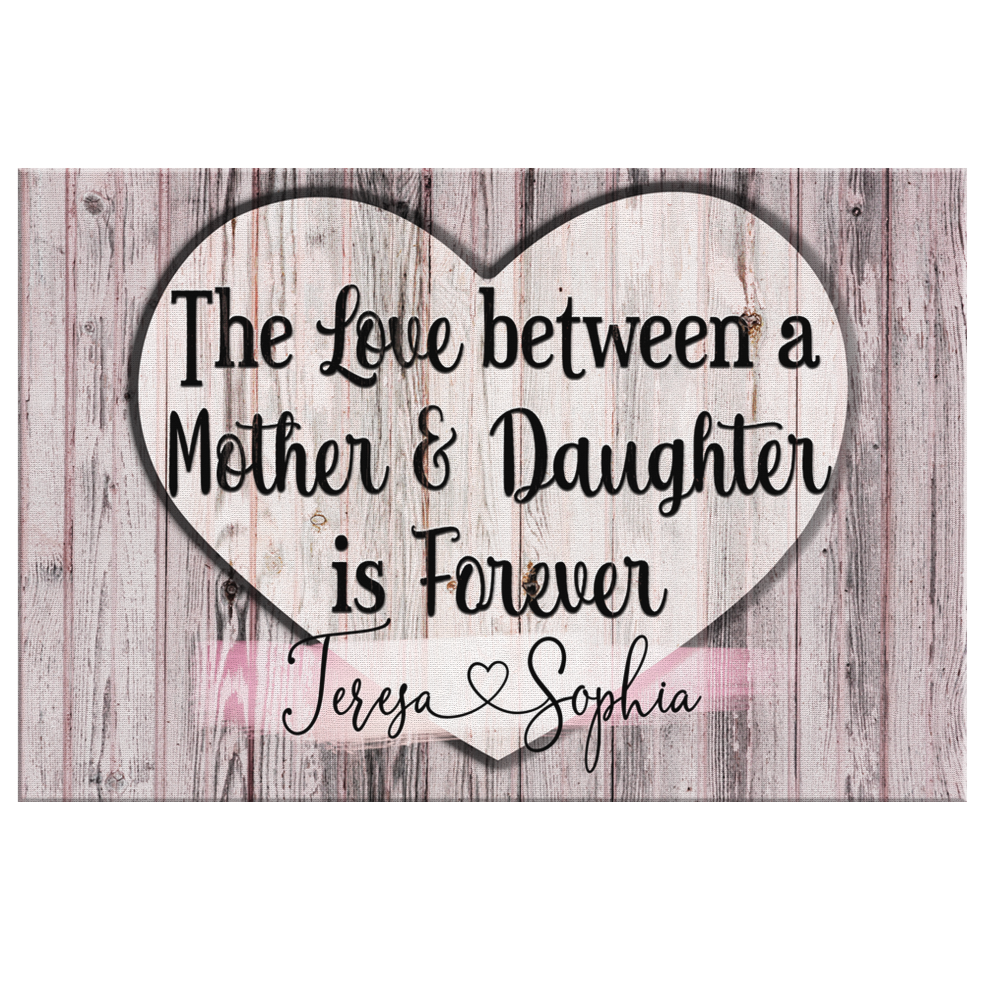 "The love between a mother & daughter is forever." Quote on a beautiful wooden image backdrop, premium printed canvas.