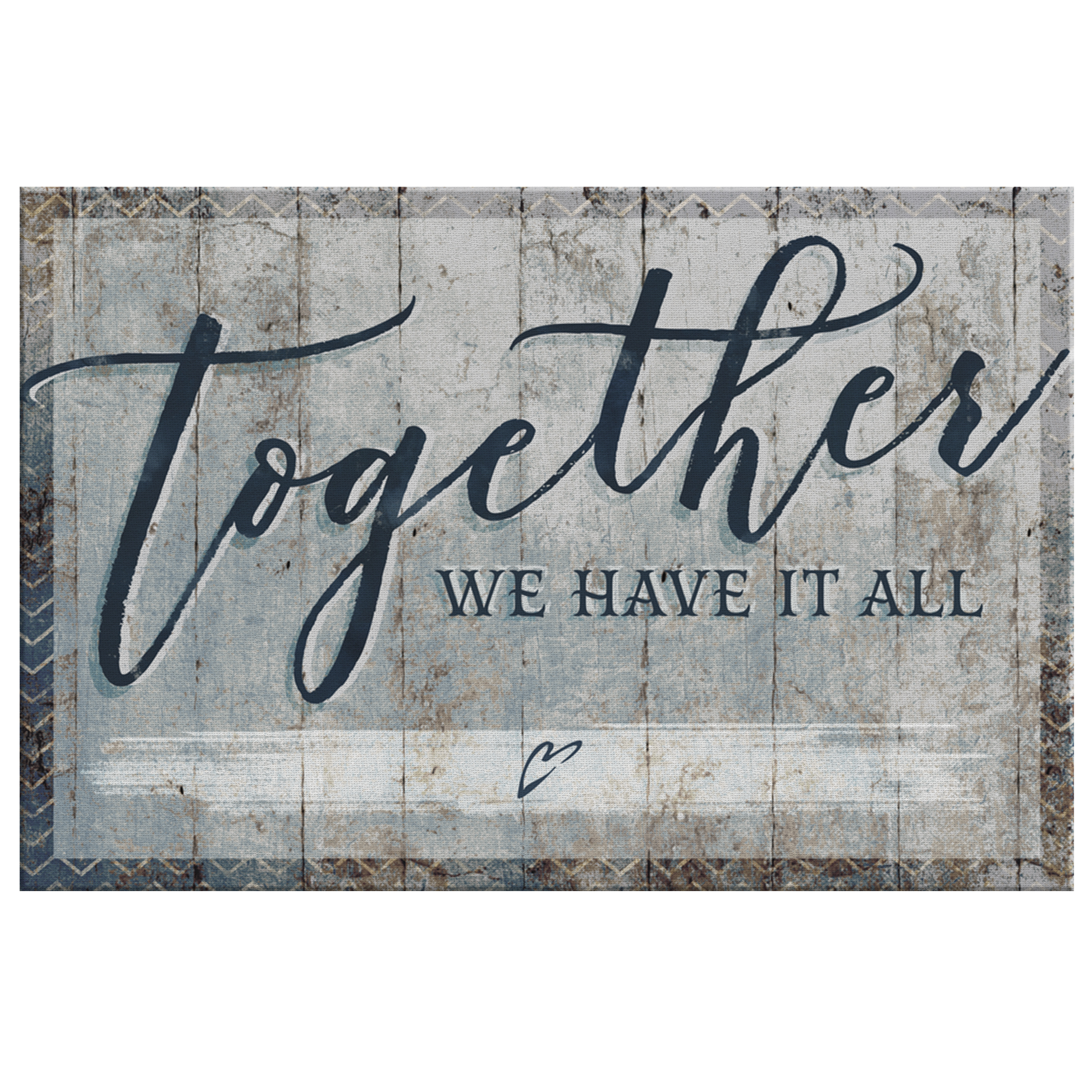 "Together we have it all." Quote on a beautiful wooden image backdrop, premium printed canvas.