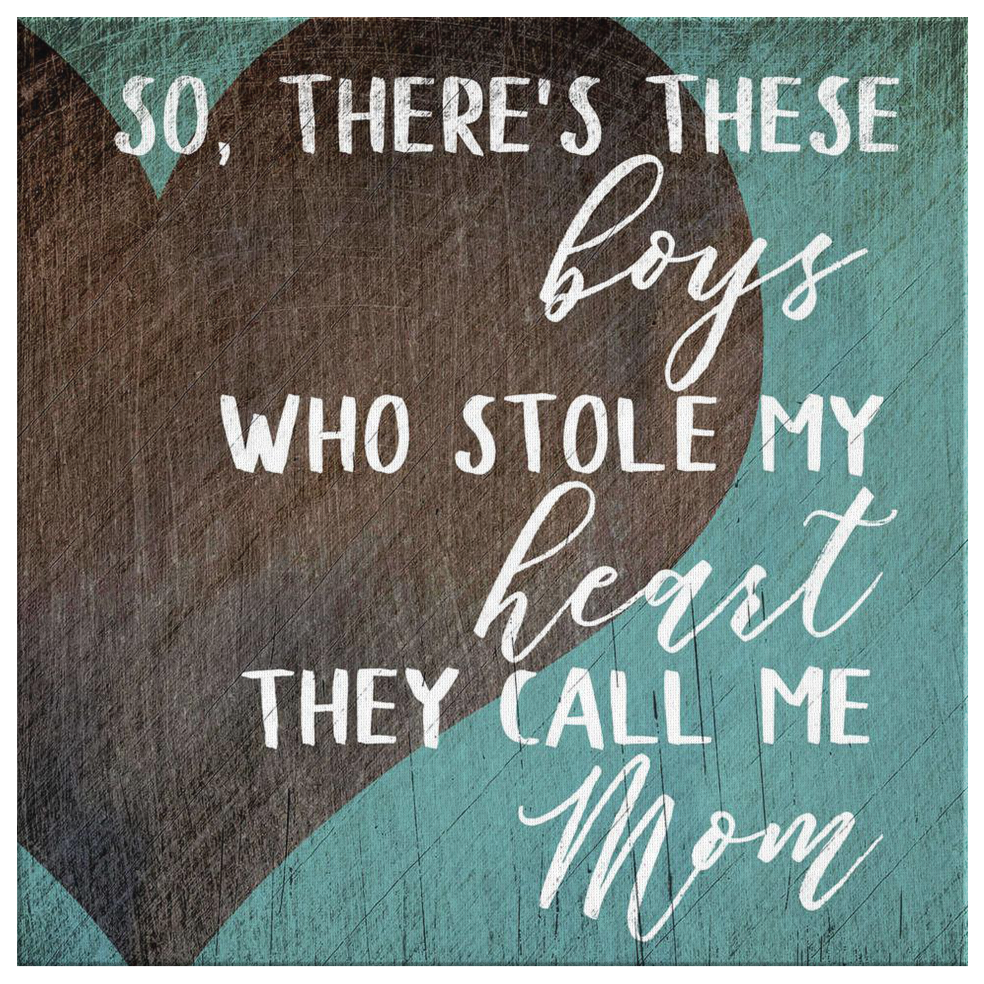 "So, There's These Boys Who Stole My Heart, They Call Me Mom" Quote on a beautiful wooden image backdrop canvas. What a fantastic gift for a family home this year!
