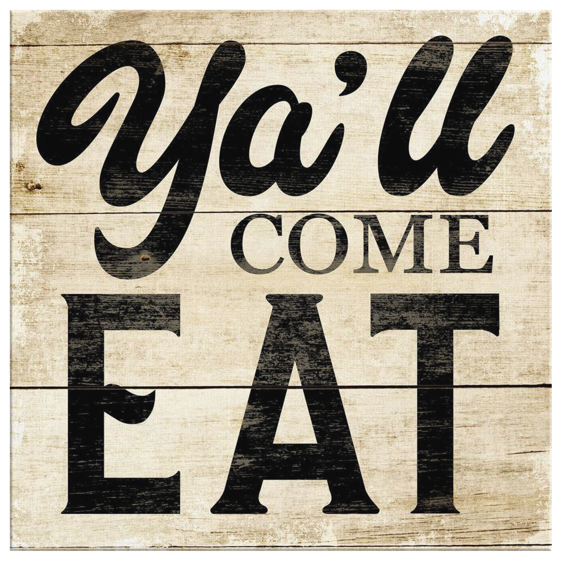 "Ya'll Come Eat" Quote on a beautiful wooden image backdrop square canvas. What a fantastic piece for a family kitchen this year!